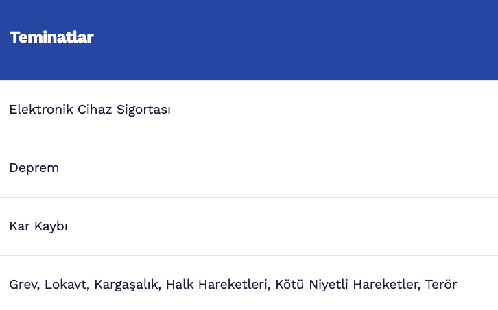 Poliçesinde check-up teminatı bulunan 14 yaş ve üzeri sigortalılarımız, yılda bir kez Doktor Değerlendirmesi, Akciğer Grafisi, EKG Kalp Elektrosu, Tam Kan Sayımı, Tam İdrar Tahlili, Sedimantasyon, Açlık Kan Şekeri, Total Kolesterol’den oluşan check-up panelimizden yararlanabilir. Check-up teminatı anlaşmalı sağlık kuruluşlarımızda geçerlidir.