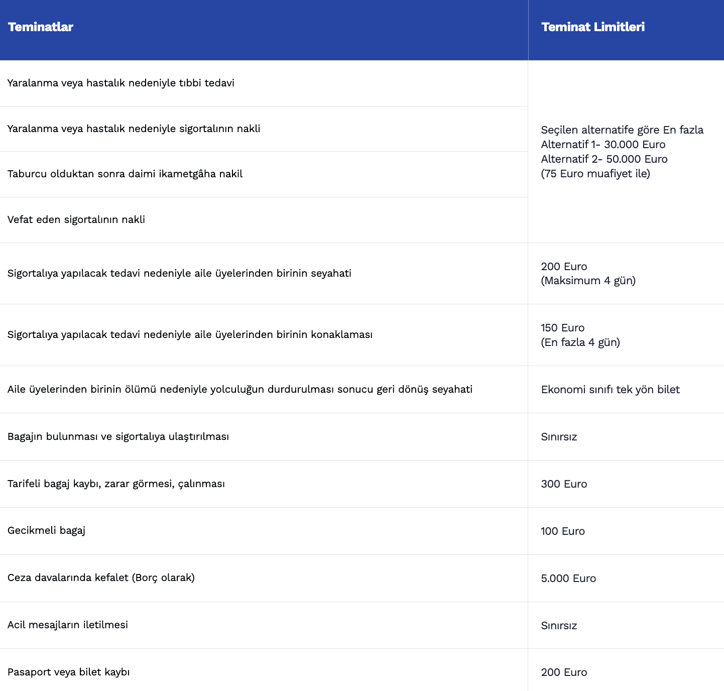 Öğrenim amacıyla yapacağınız seyahatiniz sırasında yaralanma veya hastalık sonucu oluşan giderler için seçeceğiniz alternatif doğrultusunda Yurt Dışı Eğitim Sigortası poliçenizde